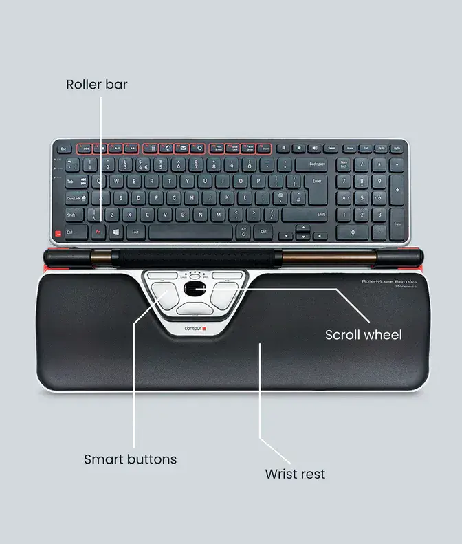 Home / Computer Mice Product Description RollerMouse Red Great Range and Precision RollerMouse Red is a centred, ergonomic mouse with an award-winning design that promotes comfort, variation, and control during extended computer use. The open rollerbar and programmable buttons allow easy alternation between left and right hands, helping to reduce strain and minimise the risk of repetitive strain injuries (RSIs). This mouse is ideal for professionals who spend long hours at the computer and need improved ergonomics without sacrificing precision. The RollerMouse Red provides a natural, balanced posture by placing cursor control directly in front of the user. Optimised for Multi-Screen Work Whether you're working with a single screen or multiple displays, the RollerMouse Red has been optimised to facilitate smooth navigation. Cursor range can be adjusted to suit different screen setups, and the textured rubber rollerbar enables accurate movement and control — ideal for detailed tasks and high-intensity work. Technical Specifications Connectivity: USB wired or USB wireless Operating System Compatibility: Windows and macOS Battery (Wireless Version): Built-in lithium rechargeable Battery Life: Up to 3 months per charge Dimensions: Red: Width 41 cm, Depth 10 cm, Height 2.3 cm Red Plus: Width 42 cm, Depth 15.5 cm, Height 2.3 cm Red Max: Width 60.6 cm, Depth 28 cm, Height 3 cm Programmable Buttons: 6 fully customisable buttons Click Resistance: Adjustable across 5 levels Cursor Speed: 10 DPI settings ranging from 600 to 2800 Materials: Aluminium body with disinfectable artificial leather palm support Warranty: 2-year guarantee Enhance your comfort, productivity, and precision with the RollerMouse Red — a game-changing ergonomic tool for modern computer users. Specifications GTIN 0743870003893 MPN CDRMRED10110 Brand Contour Product Code CDRMRED20110 Customer reviews No reviews left yet Write A Review Sort byMost RecentTop Rated Description RollerMouse Red Great Range and Precision RollerMouse Red is a centred, ergonomic mouse with an award-winning design that promotes comfort, variation, and control during extended computer use. The open rollerbar and programmable buttons allow easy alternation between left and right hands, helping to reduce strain and minimise the risk of repetitive strain injuries (RSIs). This mouse is ideal for professionals who spend long hours at the computer and need improved ergonomics without sacrificing precision. The RollerMouse Red provides a natural, balanced posture by placing cursor control directly in front of the user. Optimised for Multi-Screen Work Whether you're working with a single screen or multiple displays, the RollerMouse Red has been optimised to facilitate smooth navigation. Cursor range can be adjusted to suit different screen setups, and the textured rubber rollerbar enables accurate movement and control — ideal for detailed tasks and high-intensity work. Technical Specifications Connectivity: USB wired or USB wireless Operating System Compatibility: Windows and macOS Battery (Wireless Version): Built-in lithium rechargeable Battery Life: Up to 3 months per charge Dimensions: Red: Width 41 cm, Depth 10 cm, Height 2.3 cm Red Plus: Width 42 cm, Depth 15.5 cm, Height 2.3 cm Red Max: Width 60.6 cm, Depth 28 cm, Height 3 cm Programmable Buttons: 6 fully customisable buttons Click Resistance: Adjustable across 5 levels Cursor Speed: 10 DPI settings ranging from 600 to 2800 Materials: Aluminium body with disinfectable artificial leather palm support Warranty: 2-year guarantee Enhance your comfort, productivity, and precision with the RollerMouse Red — a game-changing ergonomic tool for modern computer users. Reviews No reviews left yet Write A Review Sort byMost RecentTop Rated Attributes GTIN 0743870003893 MPN CDRMRED10110 Brand Contour Product Code CDRMRED20110 Delivery & Returns Customer Reviews Contour RollerMouse Red Item in Stock (199 Available) Product Code CDRMRED20110 Wired Wired Wireless £291.00