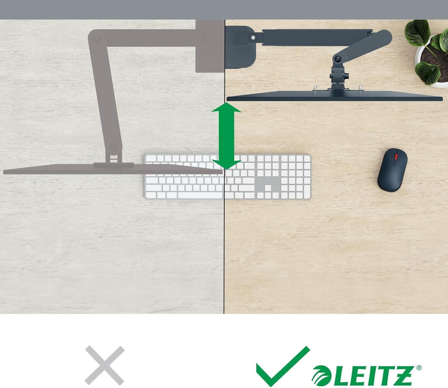 Home / Accessories / Monitor Arms and Monitor Stands View more images Product Description Introducing the Leitz Ergo Space Saving Dual Monitor & Laptop Arm Revolutionise your workspace with the Leitz Ergo Space Saving Dual Monitor & Laptop Arm – a cutting-edge accessory designed to enhance productivity, optimise desk space, and promote a healthier working environment. Why Choose the Ergo Space Saving Dual Monitor & Laptop Arm? Ergonomic Excellence Adjustable Height and Angle: Customise your screen position to reduce neck and eye strain, ensuring a comfortable viewing experience. Dual Functionality: Accommodates two monitors or a monitor and a laptop, catering to diverse work setups. Space Optimisation Maximise Desk Space: Free up valuable workspace by elevating your screens, creating a tidy and organised environment. Cable Management System: Keep your workspace clutter-free with integrated cable channels that neatly conceal wires. Durability and Flexibility Robust Construction: Crafted from high-quality materials, the Ergo arm guarantees long-lasting performance and stability. Wide Compatibility: Supports monitors up to 27 inches and laptops of various sizes, providing versatility for different devices. Effortless Installation Easy Setup: Includes all necessary hardware and a user-friendly installation guide, making setup quick and straightforward. Secure Mounting: Features a sturdy clamp or grommet mount for secure attachment to any desk. Key Features Versatile Adjustment: Effortlessly switch between landscape and portrait modes. Gas Spring Technology: Smooth and precise height adjustments with minimal effort. 360-Degree Rotation: Allows complete flexibility to position your screens exactly where you need them. Product Specifications Material: High-grade aluminium and steel Maximum Monitor Size: 27 inches Weight Capacity: 8 kg per arm Mounting Options: Clamp or grommet Colour: Sleek black finish Specifications MPN 65380089 EAN 4002432134700 Brand Leitz Product Code 65380089 Customer reviews No reviews left yet Write A Review Sort byMost RecentTop Rated Description Introducing the Leitz Ergo Space Saving Dual Monitor & Laptop Arm Revolutionise your workspace with the Leitz Ergo Space Saving Dual Monitor & Laptop Arm – a cutting-edge accessory designed to enhance productivity, optimise desk space, and promote a healthier working environment. Why Choose the Ergo Space Saving Dual Monitor & Laptop Arm? Ergonomic Excellence Adjustable Height and Angle: Customise your screen position to reduce neck and eye strain, ensuring a comfortable viewing experience. Dual Functionality: Accommodates two monitors or a monitor and a laptop, catering to diverse work setups. Space Optimisation Maximise Desk Space: Free up valuable workspace by elevating your screens, creating a tidy and organised environment. Cable Management System: Keep your workspace clutter-free with integrated cable channels that neatly conceal wires. Durability and Flexibility Robust Construction: Crafted from high-quality materials, the Ergo arm guarantees long-lasting performance and stability. Wide Compatibility: Supports monitors up to 27 inches and laptops of various sizes, providing versatility for different devices. Effortless Installation Easy Setup: Includes all necessary hardware and a user-friendly installation guide, making setup quick and straightforward. Secure Mounting: Features a sturdy clamp or grommet mount for secure attachment to any desk. Key Features Versatile Adjustment: Effortlessly switch between landscape and portrait modes. Gas Spring Technology: Smooth and precise height adjustments with minimal effort. 360-Degree Rotation: Allows complete flexibility to position your screens exactly where you need them. Product Specifications Material: High-grade aluminium and steel Maximum Monitor Size: 27 inches Weight Capacity: 8 kg per arm Mounting Options: Clamp or grommet Colour: Sleek black finish Reviews No reviews left yet Write A Review Sort byMost RecentTop Rated Attributes MPN 65380089 EAN 4002432134700 Brand Leitz Product Code 65380089 Delivery & Returns Customer Reviews Leitz Dual Monitor Arm and Laptop Holder Item in Stock (50 Available) Product Code 65380089 £130.00